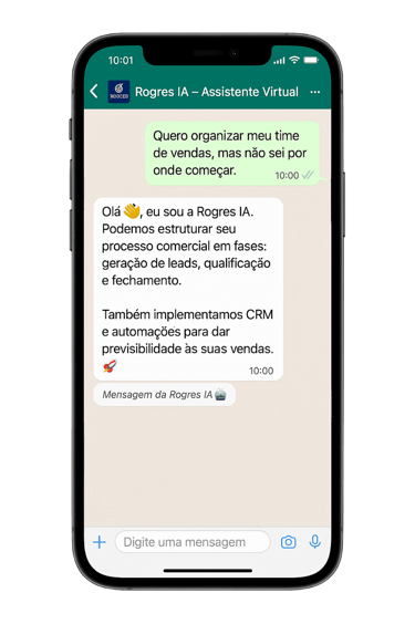 A Rogres organiza o caos do seu comercial com inteligência artificial, processos eficientes e gestão.